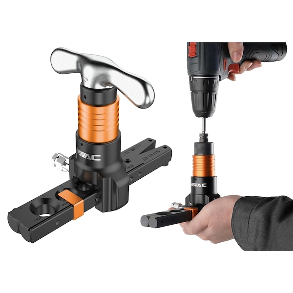 Flaring Tool, Hand or Drill-Powered, 3/4" Max OD, 7 Sizes, w/ Flare Gauge
