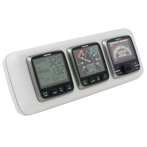 GP2301 InstrumentPod Precut w/3-3.6" Holes f/12" Guard. NavPod InstrumentPod GP2301 for 12" Guard is used for mountingthree instruments in a single NavPod at the helm or companionway., An InstrumentPod can be mounted on a StraightGuard or use a Double Bend AngleGuard to fit an InstrumentPod on the top vertical section and SailPod below on the angled section. It can also be used with the SK312 Companionway Mount for positioning sailing instruments above the companionway., All InstrumentPods Include: Acrylic capped ABS plastic, Chromed stainless steel tamper-proof fasteners, Double seal for watertight integrity, Models are available pre-cut for popular electronics, Stainless steel mounting hardware and mounting gaskets.