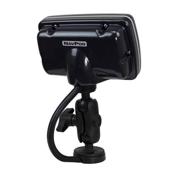 PowerPod with RAM Mount Pre-Cut for Garmin echoMAP 72sv, 73sv, 74sv, 75sv, 72dv, 73dv, 74dv D" size ball, two cable manager base platforms, RAM-D-201U-C arm and the Pin-Lock security knob. The Hi-Torq wrench is also included. RAM Mounts are designed with a patented rubber ball and socket system that allows an almost infinite number of ways to position the angle of your fishfinder or chartplotter for an adjustable and precise position for viewing., NavPods unique stainless steel tamperproof fasteners and the RAM Pin-Lock security system are combined to allow you to leave electronics on board the boat without worry. Mount it on any surface angle and protect your electronics on all sides. The PowerPod RAM Series combines the best attributes of two very popular product lines from two very focused companies providing mounting solutions for your marine electronics., PowerPod with RAM Mounts - Protection, Positioning, Security.