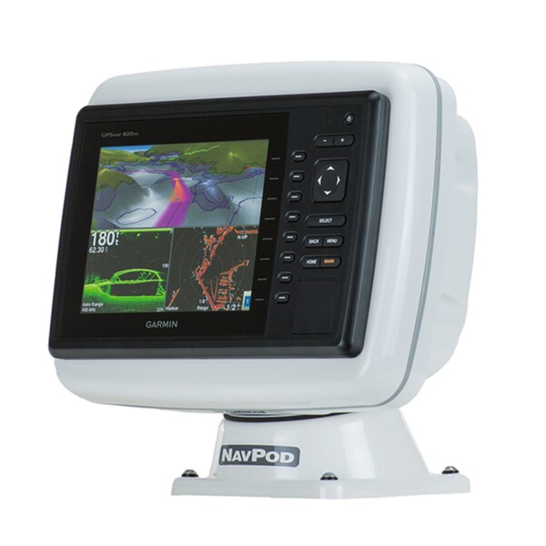 PP4800-12 PowerPod Pre-Cut for Garmin GPSMAP 820 / 820XS / 840 / 840XS / 6008 / 6208. PP4800 Series, PowerPods for Power are a better option than bracket mounting. PowerPods provide a clean look for flush mounting with the advantage of a swivel base,The trunion bracket that is supplied with most electronics is not optimal. PowerPods have the advantage of protecting the back of the electronics from harsh saltwater spray. Most manufacturers do an excellent job of protecting the face of the display from water intrusion with sealed rubber push buttons. The back is generally not waterproof. They are expecting you to flush mount it into the console or a NavPod. The PowerPod also protects the plastic connectors and wires from deterioration caused by long term exposure to UV,PowerPods for Sail are for mounting on a flat surface. Perhaps under the dodger or aft end of the cockpit table especially on boats with dual wheels,GEN3 Features:. Hi-Gloss Material, NavPods are manufactured with a custom co-extruded acrylic capped ABS material. NavPod uses the absolute best UV resistant material that provides a very high gloss white finish that matches gel-coated fiberglass. The Gen3 enhancements now include a thicker gauge material that improves strength and provides for better structural rigidity. Waterproof Seal, All NavPods are manufactured with a double gasket system providing an excellent watertight seal between the front and back of the NavPod for protection of your Marine Electronics. NavPods are made to withstand the harshest of wet offshore boating conditions. Gen3 enhancements include a thicker external silicone gasket with improved flush fit. The internal EPDM gasket is now 50% thicker and is not subject to "compression set" like many rubber compounds. This is important when you need to open the NavPod in the future to service your electronics,Nickel Chrome Plated Screws, NavPod uses all stainless steel mounting hardware that is supplied with each NavPod. Large round head tamperproof screws have deeper sockets for the NavPod wrench for better holding ability when tightening than the previous screws. For Gen3 we provide nickel chrome-plated stainless steel tamperproof screws for security combined with a little bling! , Manufacturing Process, Heavy-gauge thermoforming is considered an art since many processes come into play. It all starts with the design and development of the tooling