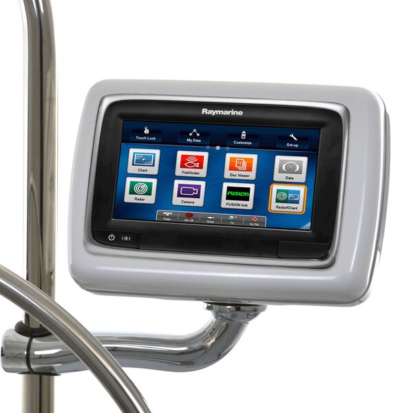 RMX4404 RailMount Pre-Cut for Raymarine a75/a77/a78. RailMount NavPods are best used for mounting of an autopilot control, sailing instrument, or small chartplotter onto an existing pedestal guard. Fits onto any 1" or 1.25" diameter tube. A Chromed Stainless Steel arm is used to mount a NavPod. The NavPod can rotate 180 degrees for easy viewing while sitting under the dodger on a rainy day. All wire run from the NavPod, down the center of the stainless steel arm, and into the pedestal guard. This application provides a clean and sturdy installation for electronics, without replacement of the pedestal guard., Sizing: Overall Size: 9"H x 10.2"W x 6"D, Usable Face: 5.6"H x 8.9"W x 3.75"D, Max Cutout: 4.625"H x 8"W, All RailMount NavPods include, Acrylic capped ABS plastic, Chromed stainless steel tamper-proof fasteners, Double Seal for watertight integrity, Models are available pre-cut for popular electronics, Chromed stainless steel arm with swivel mount, Both sets of adaptors included for 1" or 1.25" diameter tubing.