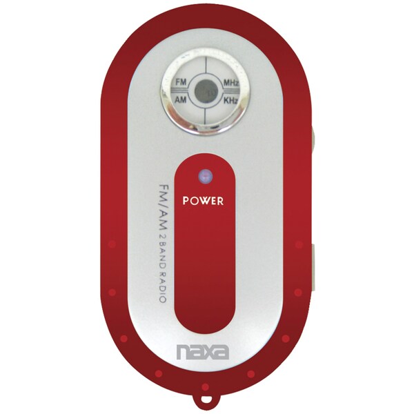 Whether exercising, commuting or at the office, the red Naxa AM/FM Mini Pocket Radio keeps you connected to your favorite terrestrial radio stations. This compact radio is small enough to fit in your pocket, and lightweight enough to comfortably hang around your neck from its included neck strap.