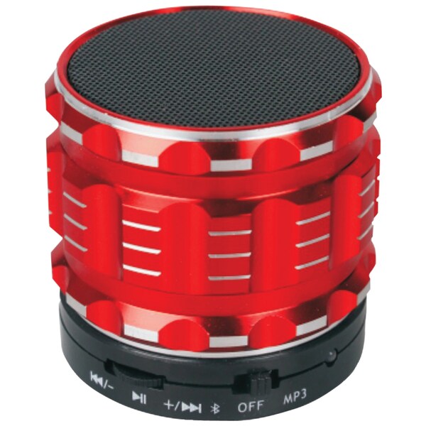 Take your music with you anywhere you go with the Bluetooth Speaker (Red) by Naxa. This compact speaker delivers sound beyond its size from a 45mm full-range driver in a modular buddy-jack design. Connect your music in a variety of ways including over Bluetooth, from the built-in microSD/microSDHC slot, through the 3.5mm aux input, or listen to FM radio. The speaker includes a 5,000mAh rechargeable battery, USB cable and aux cable.