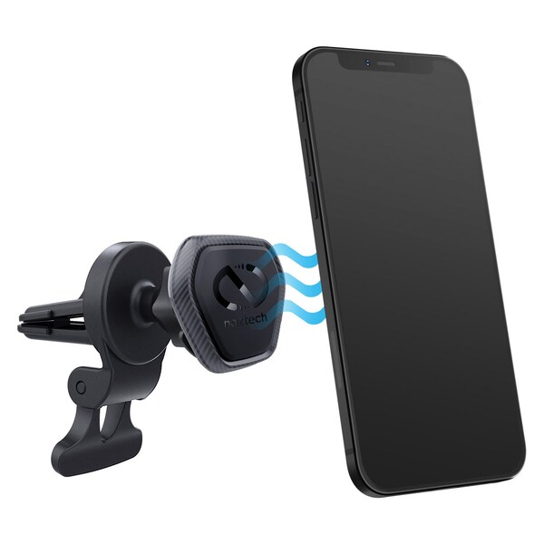 The Naztech is a highly versatile magnetic mounting system that provides a clear unobstructed driving view while securing your mobile device at eye level and within easy reach. Enjoy a hassle-free, quick installation on your vent by gripping onto any grille with the universal rubber grips. Easily find the perfect viewing position without blocking airflow, and get maximum support for your devices using the built-in stability kickstand. Then, hover your device near the magnetic head, and 4 rare-earth magnets instantly grasp on, holding it in place. Keep navigation, hands-free calling, music control, and notifications at your fingertips or glanceable, even on the bumpiest roads. Unlike clunky mounts with clips and brackets that need constant two-handed adjustments, this mount is engineered for quick 1-handed positioning and grab-and-go convenience.