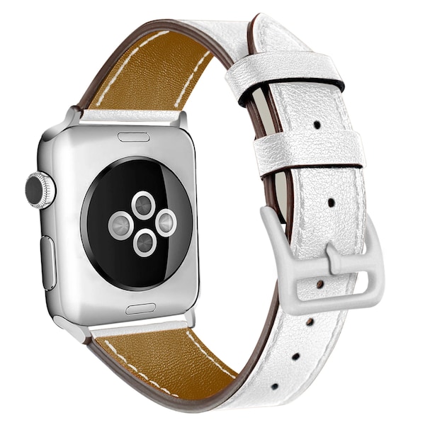 For Apple Watch Series 1/2/3/4/5 Genuine Leather Comfortable Fully Adjustable Stainless Steel Hardware Buckle Closure Includes a S/M M/L band