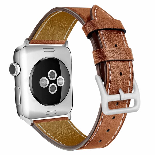 For Apple Watch Series 1/2/3/4/5 Genuine Leather Comfortable Fully Adjustable Stainless Steel Hardware Buckle Closure Includes a S/M M/L band