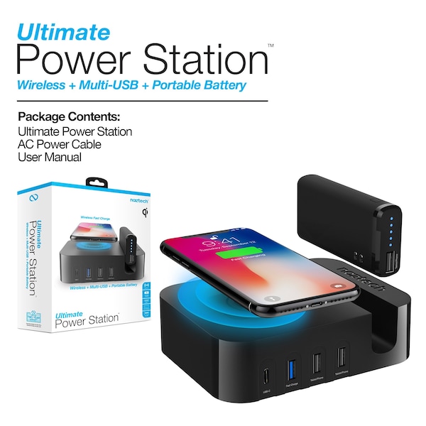 Powerful 50W Output Charge 6 Devices Simultaneously Universal for Qi, USB-C, Micro USB, Lightning and Fast Charge 7.5W/10W iPhone Android Fast Charge Compatible 15W High-Speed USB-C Output 4000mAh Portable Battery IntelliQ Smart Chip Technology