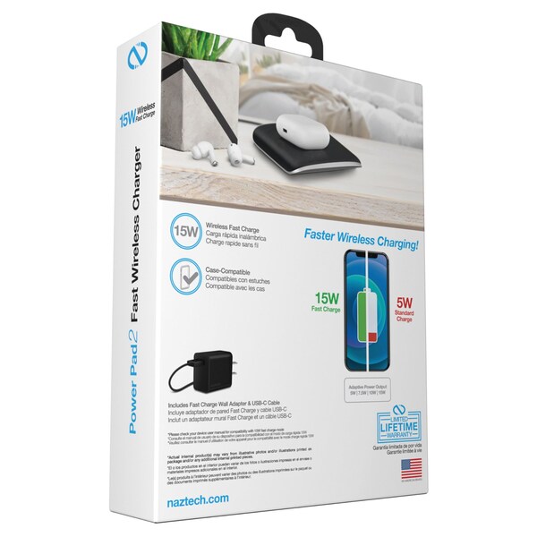 It’s time to lose the cables and take your charging experience to the next level. With the Naztech Power Pad 2 15 Watt Fast Wireless Charger, there’s no need to struggle with aiming plugs into tiny ports or wrestle with long charging cables. Just drop your Qi-enabled device onto the pad to start charging on contact! Whether your device is Apple or Android, standard or fast-charge compatible, Naztech’s Adaptive Wireless Charging Technology instantly delivers up to 15 watts of pure power for the fastest charging experience possible. No Wires. No Cables. Just Power.