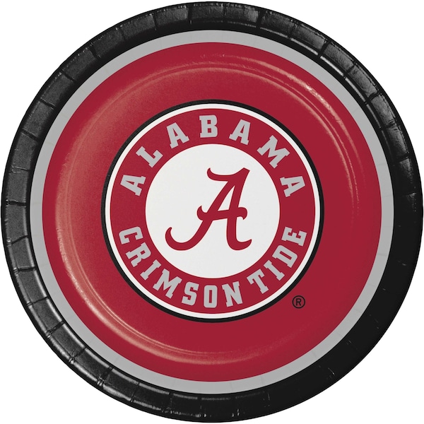 Cheer on Bama and Roll Tide with our University of Alabama Paper Plates! These sturdy plates measure 9", perfect for serving tailgate snacks or a cookout meal. The plates feature Alabama colors of crimson, white, and gray; the classic Alabama "A"; and "Alabama Crimson Tide" text. Use these plates at any Alabama event, including tailgates and parties. Our University of Alabama Plates are sold 96 per package and match our coordinating Alabama party supplies.
