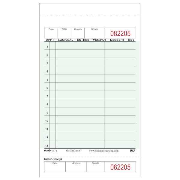 Guest Check Cardboard 1Pt,13 Line,PK2500, Package Quantity 2500