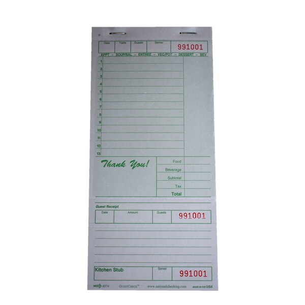 Guest Check Board 1 Part Green 13 Line, PK1000 (Discontinued)
