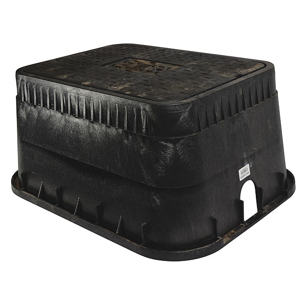 Meter Box, Material Polyolefin, Overall Height 12 in, Overall Width 16 1/4 in, Overall Length 21 1/2 in, Color Black, Product Type Meter Box, Includes Reader Cover, Nominal Pipe Size 3 in x 4 in, Shape Rectangular, Diameter Not Applicable