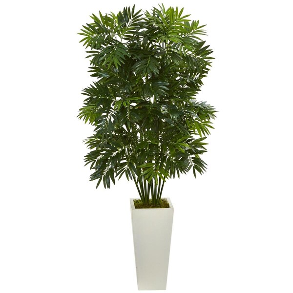 49 in. Mini Bamboo Palm Artificial Pant in White Tower Planter (Discontinued)