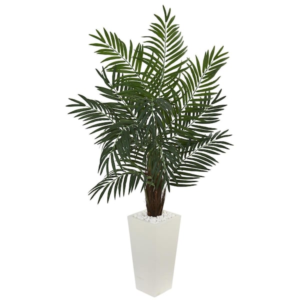 5.5 ft. Areca Artificial Palm Tree in White Tower Planter (Discontinued)
