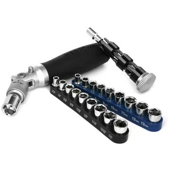 (1) 1/4" Drive Indexable Reversable Ratchet; (1) Magnetic 1/4" Bit Holder; (12) Insert Bits; #1, #2, #3 Phillips; Slotted: 1/8", 3/16", 1/4"; Hex: 1/8", 5/32", 7/32"; Torx(R): T15, T20, T25