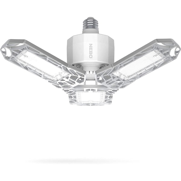 Instantly upgrade garages, closets, basements and attics without batteries, rewiring or changing the fixture. This powerful 6,000 lumen light fits in any standard household light socket and each of the adjustable LED panels can be tilted 90 degrees to direct the light exactly where you need it.