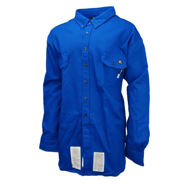 9 oz Indura Cotton FR Fabric - (CAT 2) - 11.5 cal/cm2; Classic Tapered Styling with an Eased Pleat Back; Breast Pockets, Button Down Collar, Tapered Sleeves, and Adjustable Cuffs; Garment Fabric and Components NFPA 2112 Certified and Listed by UL