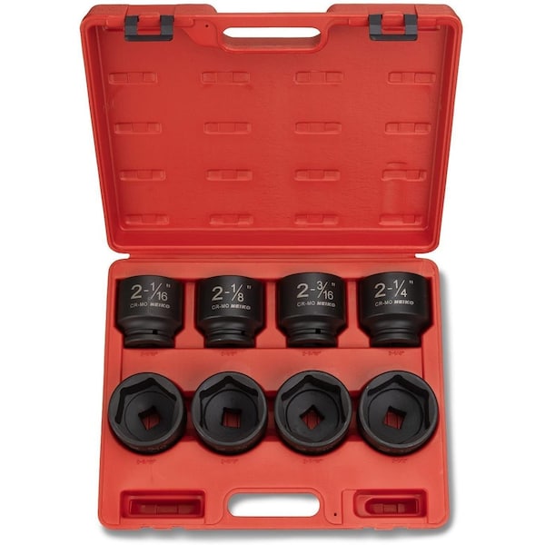 From trucks and tractors to heavy equipment or large machinery, big service and repair jobs need the NEIKO 02392A 8 Piece 3/4'' Drive Impact Socket Set. Made for use with impact wrenches, these premium chrome molybdenum sockets deliver superior performance with max torque output. High-torque, 6-point design contacts and grips the stronger flat sides of the fastener head, not the weaker corners, to prevent stripping or round-off under extreme stress. Extra-large, high-contrast size markings are permanently laser etched onto each socket, making size selection quick and easy, even in low light settings. A durable black phosphate finish protects from rust and corrosion. Lastly, the rugged blow-mold case keeps everything organized for neat, efficient storage and makes for portability to carry to the job.