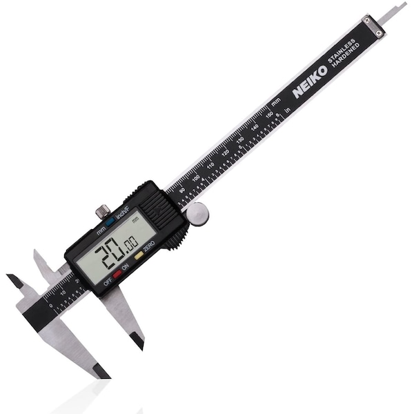 When it comes to precision and exact measuring in home improvement projects, the Neiko family of digital calipers are an excellent digital solution for your measuring needs due to its accurate and easy-to-read displays. Ranging from 6'', 8'', to 12'' options, it is an essential tool to cover everything you need for your job at the worksite or automotive garage. Each tool comes with an extra-large LCD digital display for clear readouts and the stainless-steel build of these calipers ensures longevity and lasting service life over all your projects. Factory calibrated to professional standards, trust in Neiko for all your caliper-based application needs with an exact internal and outside measurement accurate to .001 of an inch with a display that can be zeroed at any point on the slide. The machine grooved thumb-roll mechanism and positioning lock are provided for sure adjustment. The premium steel shaft with depth-measurement probe, precision ground jaws, on-off switch with auto-off and inclusion of two long-life batteries (one spare) with each caliper makes each unit the choice measuring tool whether in standard SAE or metric MM or fractional display.