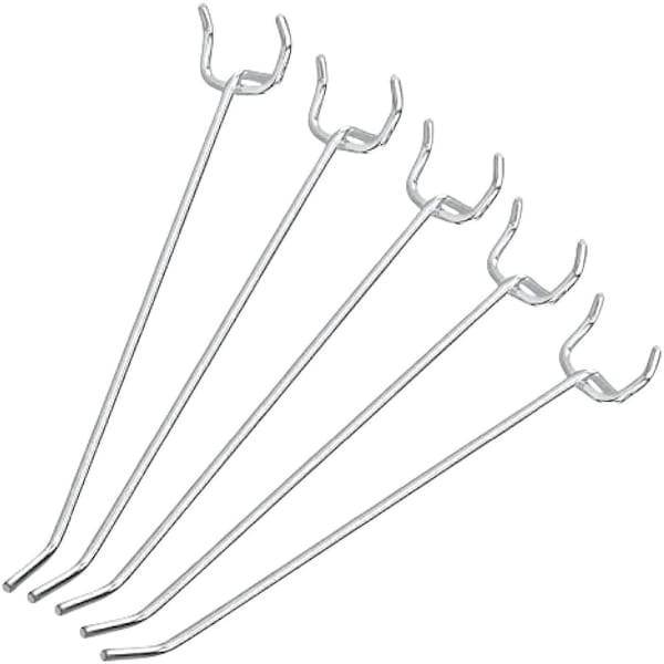NEIKO 53102A 6'' peg board hooks include common J-style metal hooks compatible with peg board and shelving. Coated with a corrosion-resistant zinc-plated, Box of 50 4 inch hooks designed to fit 1/4 to 1/8'' boards.