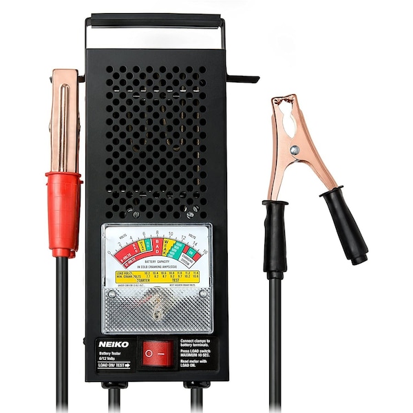 Suitable for 6 and 12 volt batteries. Fixed load current - 100 AMP. 100 AMP Load Test for 12V batteries up to 1,000 CCA. 50 AMP Load Test for 6V batteries up to 1,000 CCA. Hold load on 10 seconds, with test cycle of 10 seconds per test with 1 minute cool down, and 3 tests within 5 minutes maximum.