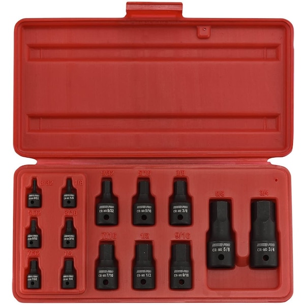 Impact Hex Bit Socket Set, SAE, Cr-Mo