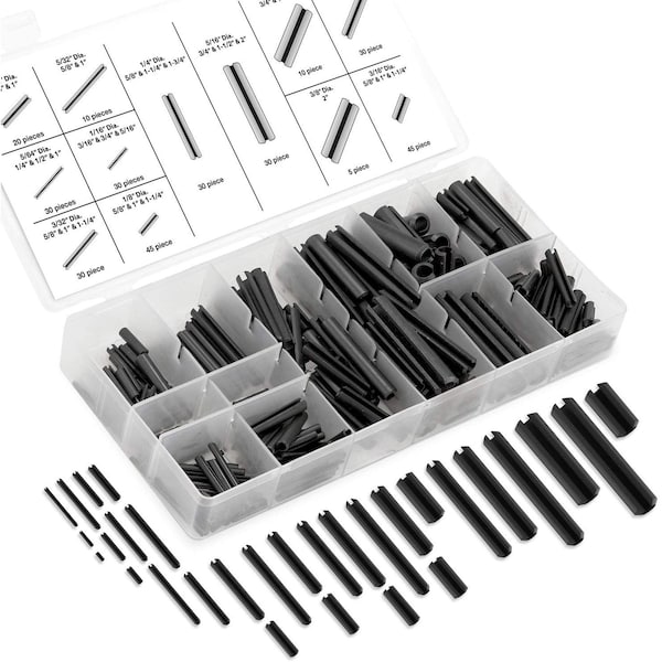 Roll Pin Assortment Set, 315 Pieces, SAE, Slotted Spring Steel, Black Dowel Tension Roll Pin