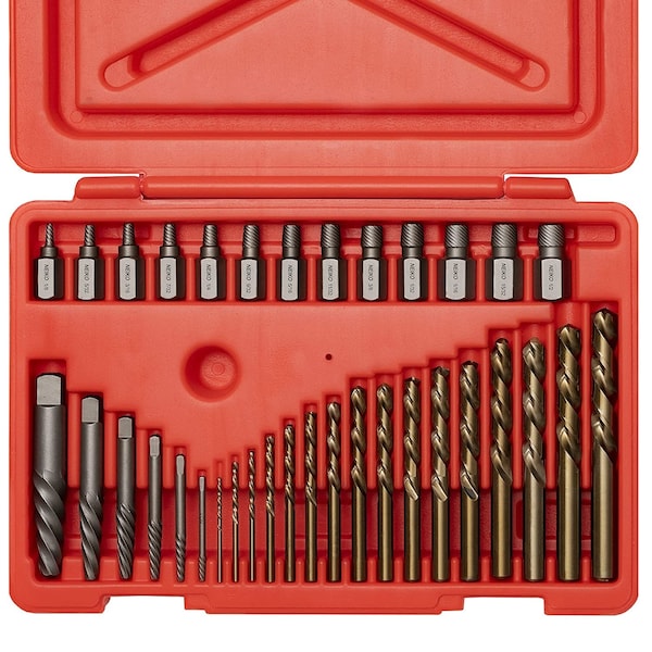 Screw-Extractor Set, Broken Bolt Remover, Left-Hand Drill Bits, 5/64'' to 1/2'', 35-Piece Set