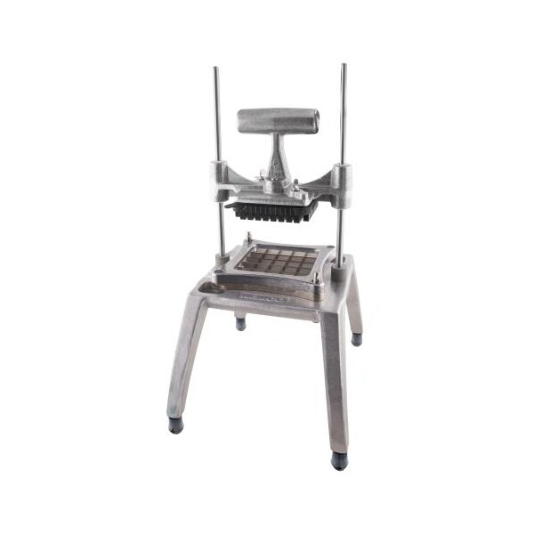Fruit and vegetable dicer; 19 1/2 in (H) x 9 3/4 in (W) x 12 in (Depth); 1 in cut; Aluminum construction with stainless steel blades; Large base accommodates 6 in tall containers; Interchangeable blade cartridges; Removable push block gaskets; Weighted handle; Non-slip rubber feet; NSF certified