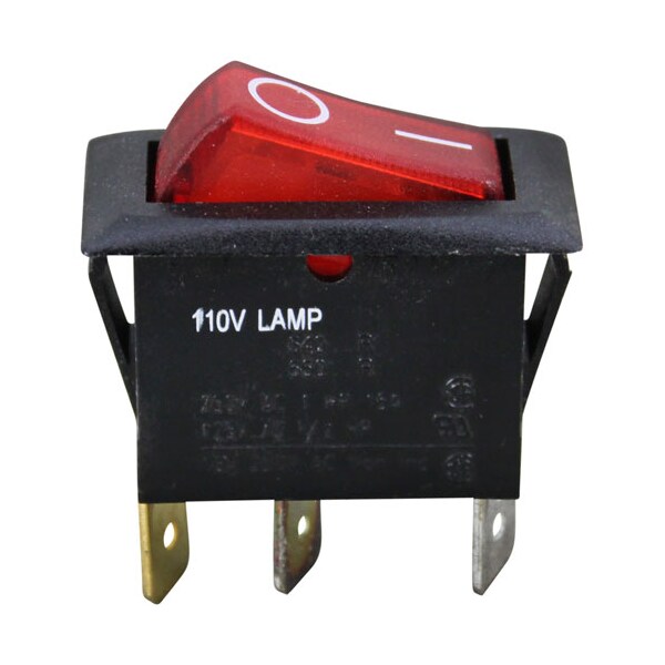 [ Lighted Rocker ] [ Fits Hole 9/16" X 1-1/8" ] ;[ On/Off ] [ Spst ] [ Terminals 3 (1/4" Tabs) ]; [ Amp/Volt 16A/250V, 125V Lamp ] ;[ Color Lighted/Red/Black] ;[ Markings O, I (Circle & Dash) ]