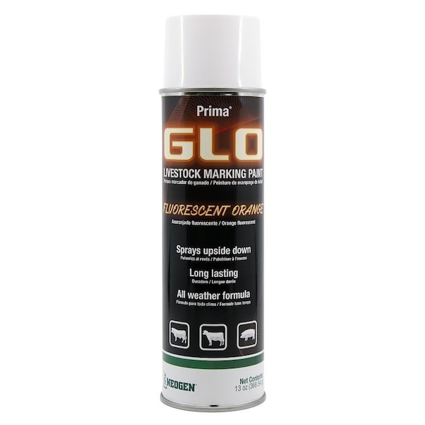 Neogen Ideal Prima Spray-On Glo Livestock Mark Paint, Compositions: Acetone, Hepane, Stoddard Solvent, Petroleum Distillates, Hydrotreated Light, Orange, Net Content: 12, Case