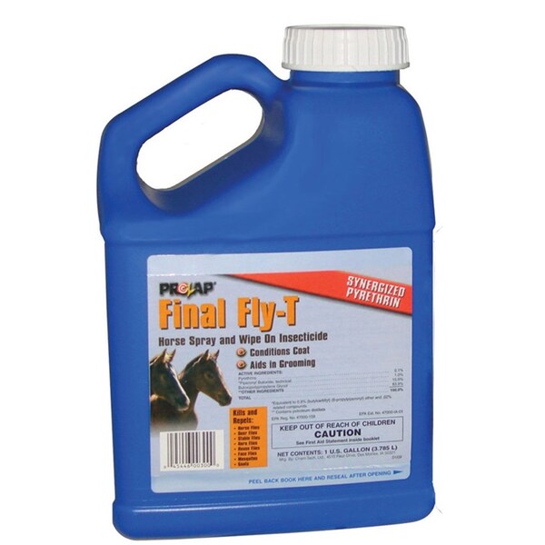 Final Fly-T® has been specially formulated to not only combat flies, but to also offer coat conditioning properties for that extra sheen. Final Fly-T® protects the hair against flies while releasing a desirable sheen when brushed throughout the coat. Apply 1 to 2 oz. per head per day to give adequate protection against horse flies, deer flies, stable flies, barn flies, house flies, face flies, mosquitoes and gnats.