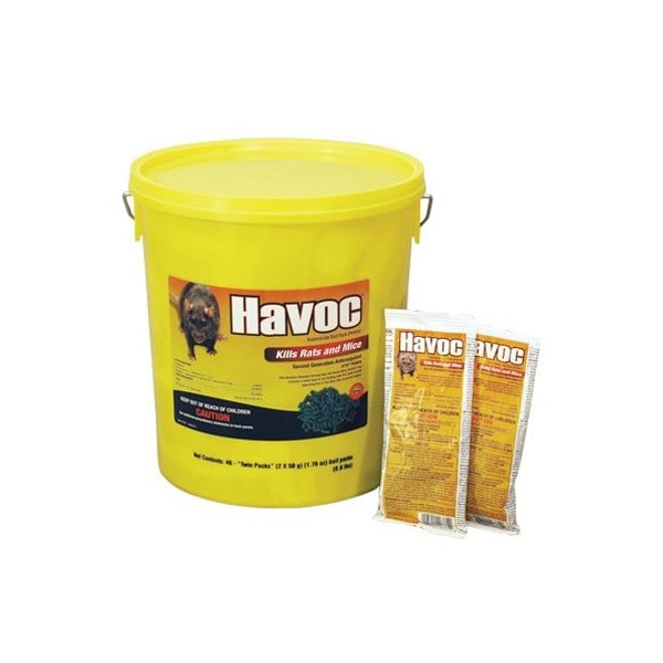 Havoc, 80 Pack, 50 Gram, Rat Poison Pellet, Anticoagulant Active Brodifacoum, Second Generation Rodenticide, Place Pack, Pail, For RuralAgricultural Use Only, Ordering Restrictions May Apply, Contact Merchant For Ordering Details