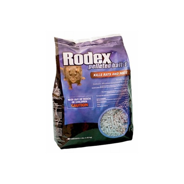 Rodex, 4 LB, Pellets Pouch, Active Ingredient Is Warfarin, Pouch, For RuralAgricultural Use Only, Rodenticide Using MicroEncapsulated Warfarin, Which Aids In A Greater Acceptance Rate Than Non Encapsulated Warfarin Bait, Considered The Lowest Hazard To NonTarget Animals