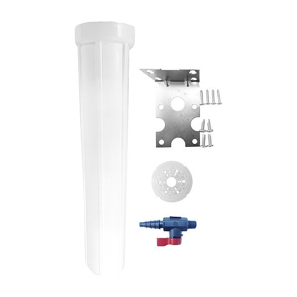 Water Filter Housing, Housing Material Polypropylene, Flow Rate Not Applicable, Connection Size 3/4 in, Overall Height 23 in, Overall Diameter 5 in, Connection Type NPT, Overall Length 23 in, Overall Width 5 in, Application Ice Machines, Medical Equipment, Color White, Compatible Mfr. Model Number 70-0121, Compatible with Grainger Part Number 858UR9, Includes Cap, Mounting Bracket, O-Ring, Spacer, Sump, Maximum Pressure 100 psi, Maximum Temperature 100 Degrees F, Micron Rating Not Applicable