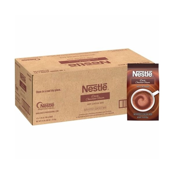 Dark Chocolate Hot Cocoa Mix delivers a sweet yet dark chocolate-flavored cup of hot cocoa. Prepare bulk hot chocolate mix by the cup or by the bag with hot water or milk. Or use in other food and beverage applications. Large supply of hot chocolate mix is perfect for cafeterias, restaurants, beverage stations and more. Store in a cool, dry place. Kosher dairy, hot cocoa mix offers a 18-month shelf life. Made with real Nestle cocoa using sustainably sourced cocoa beans, this hot chocolate is part of the Nestle Cocoa Plan to promote better farming, better lives and better cocoa.