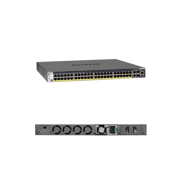 Netgear M4300 48x1G PoE+ Stackable Managed Switch with 2x10GBASE-T and 2xSFP+ (1;000W PSU) - 50 Ports - Manageable - 10 Gigabit Ethernet, Gigabit Ethernet - 10GBase-T, 10GBase-X, 1000Base-T - 3 Layer Supported - Modular - Twisted Pair, Optical Fiber - 1U - Rack-mountable