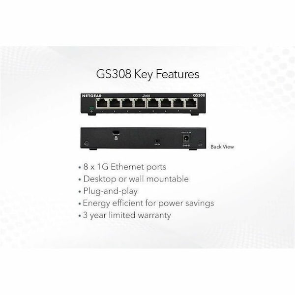 NETEGEAR 8-PORT GIGABIT ETHERNET UNMANAGED SWITCH GS308