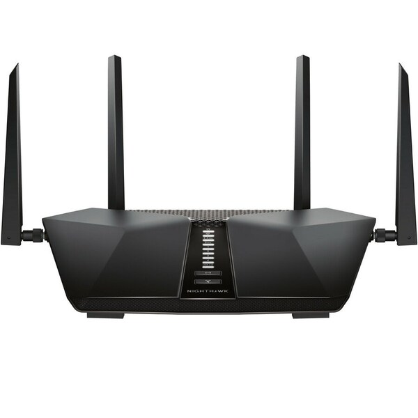 The NETGEAR Nighthawk Ax6 Ax5400 Wifi Router is a wireless router with a product type of Wireless Router and a Wireless LAN Standard of IEEE 802.11ax. It has a height of 2.3", a depth of 8.1", and a width of 11.6".