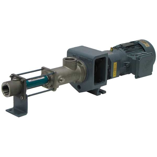 Progressive Cavity Metering Pump, Discharge Connection Size 1 1/4 in, Discharge Connection Type NPT, Housing Material Stainless Steel, Intake Connection Size 1 1/8 in, Intake Connection Type NPT, Media Temperature (Maximum) 130 Degrees F, Motor Speed (Maximum) 604 RPM, Seal Material Stainless Steel, Viton, Viscosity (Maximum) 1,000 cps, Nameplate Voltage 115/230V AC, Solid Diameter (Maximum) 8 mm, Horsepower (Maximum) 1/2 hp, Frequency 60 Hz, Includes Gearmotor Drive
