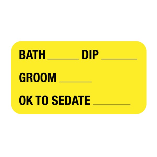 Bath _Dip _Groom _ Ok to Sedate _ 7/8 x 1-5/8 Yellow w/Black
