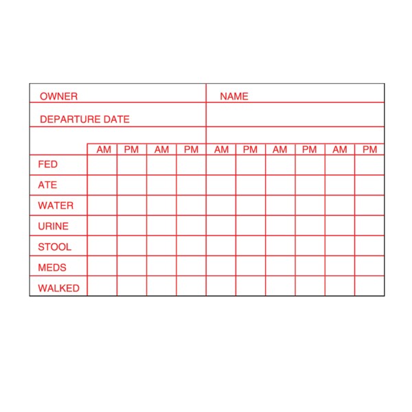 Cage ID Card Name/ Owner/Special Instructions 3" x 5" White w/Red