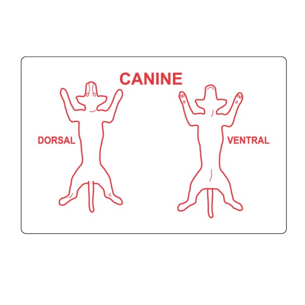 Canine Dorsal Ventral Label 2" x 3" White w/Red