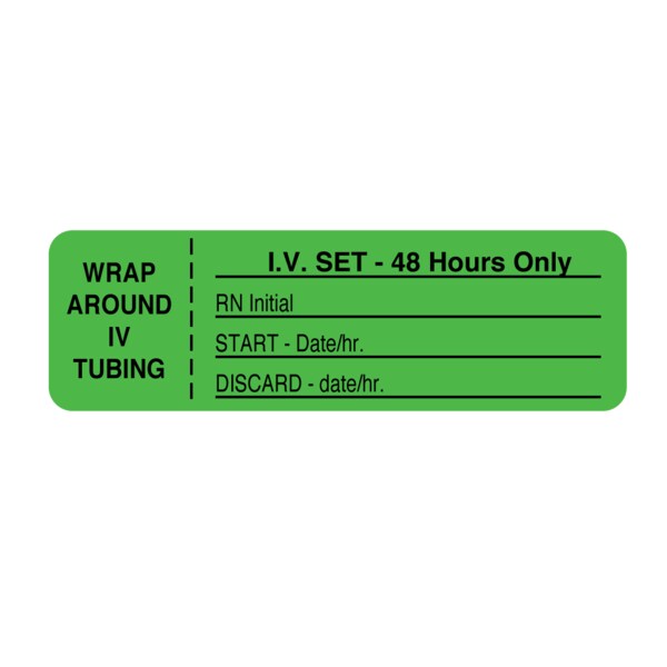 CMA Hrly IV Tubing Label-Set 48 Hours Only 15/16"x3" Flr Chart w/Blk