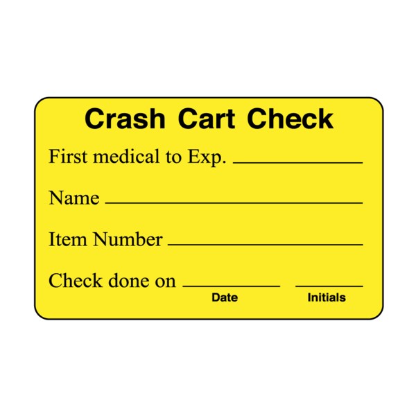 Crash Cart Check/First Medical to Exp. 1-3/4" x 2-3/4" Yellow w/Black