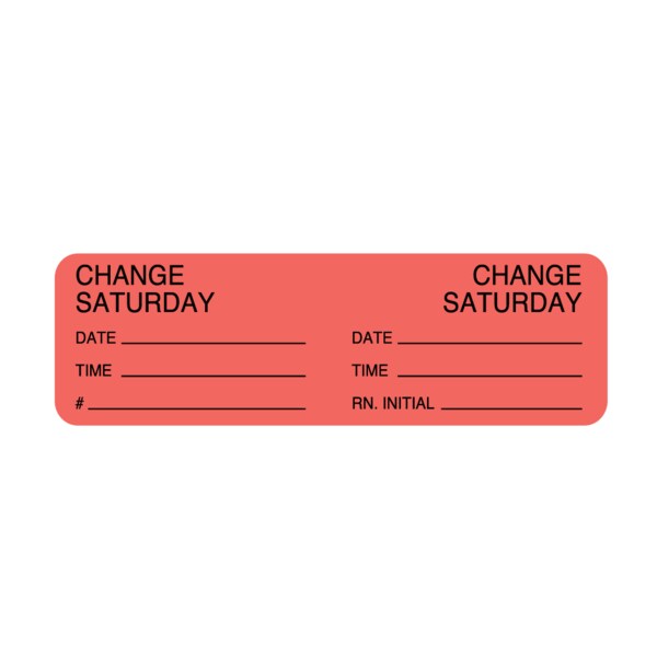 Day Change IV Tubing Label - Change Saturday 7/8" x 3" Flr Red w/Black