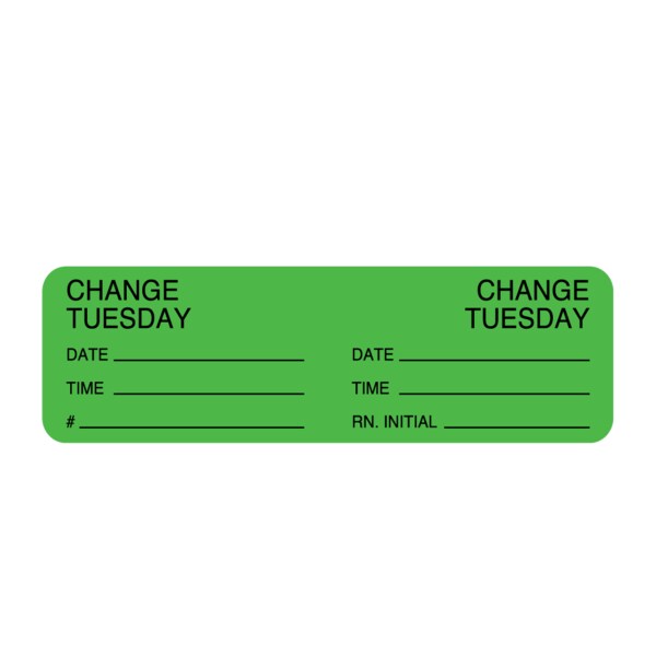 Day Change IV Tubing Label -Change Tuesday 7/8" x 3" Flr Green w/Black