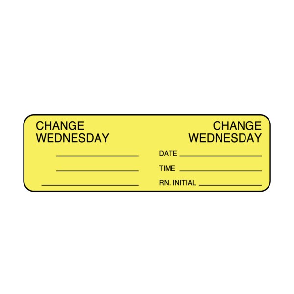 Day Change IV Tubing Label -Change Wednesday 7/8"x3" Flr Chart w/Black