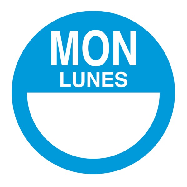 DaySpots - Monday/Lunes 1" circle White w/Blue