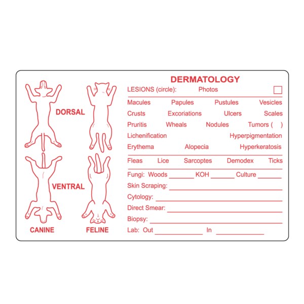 Dematology Canine Feline Label 2-1/2" x 4" White w/Red